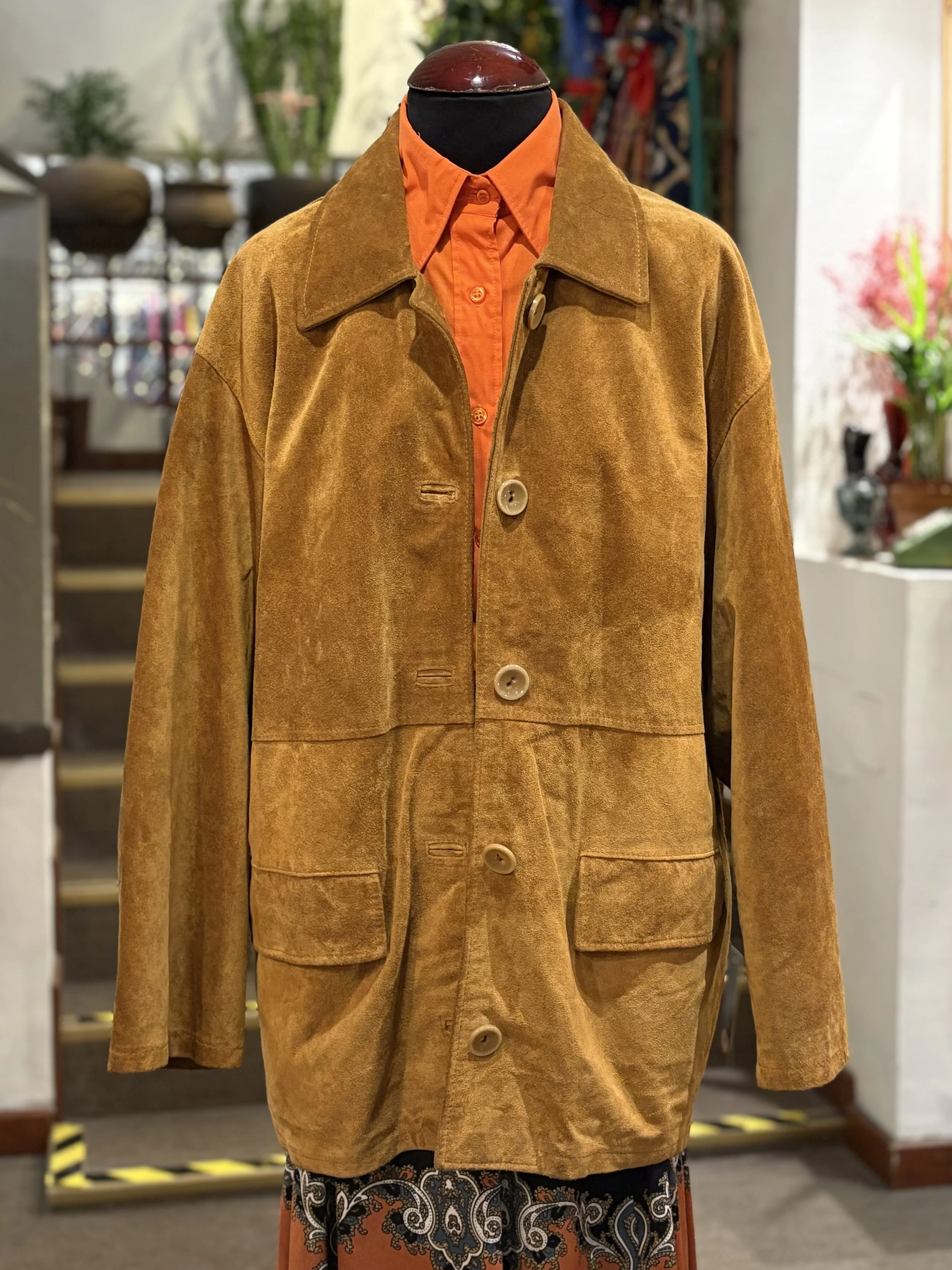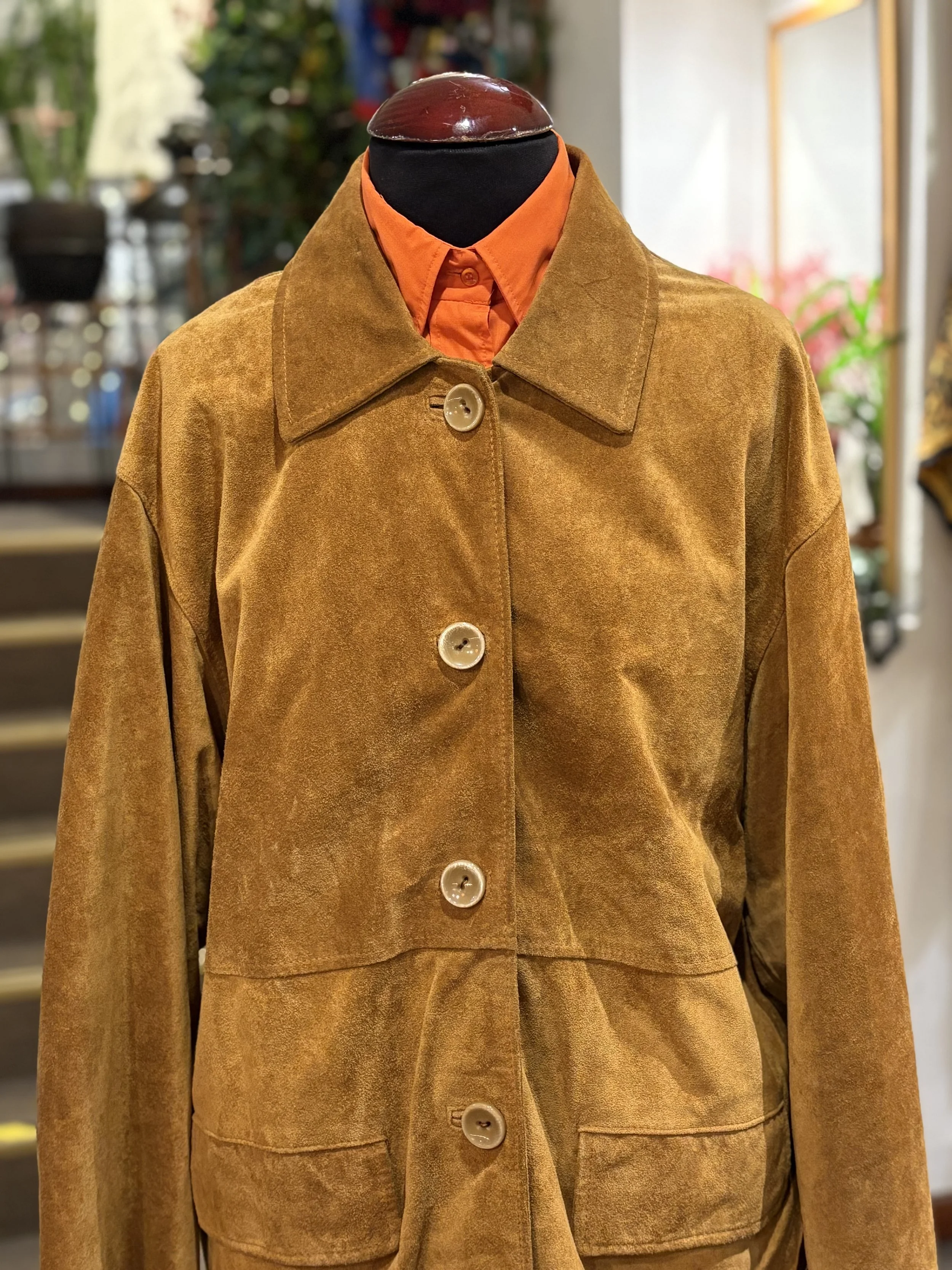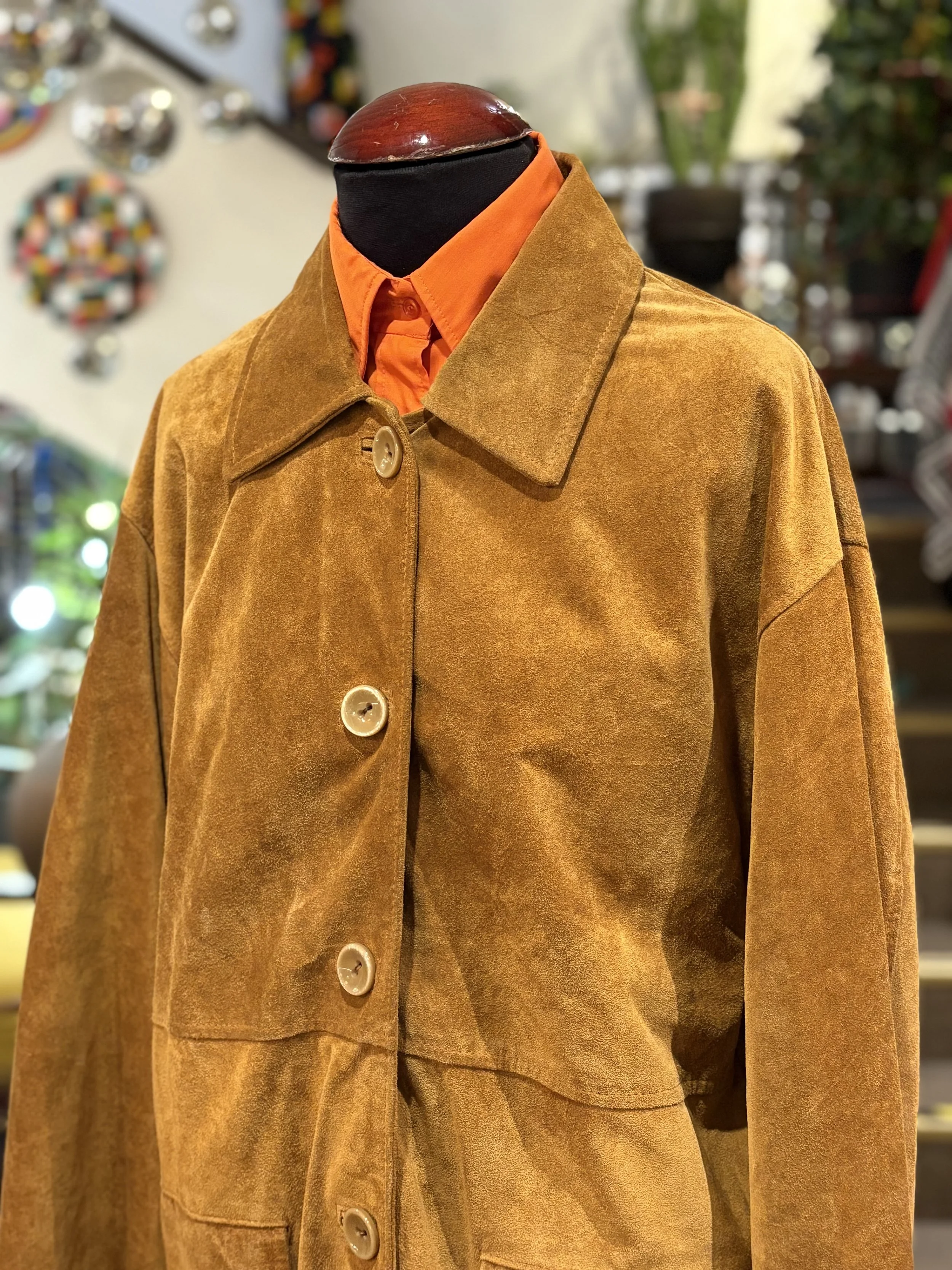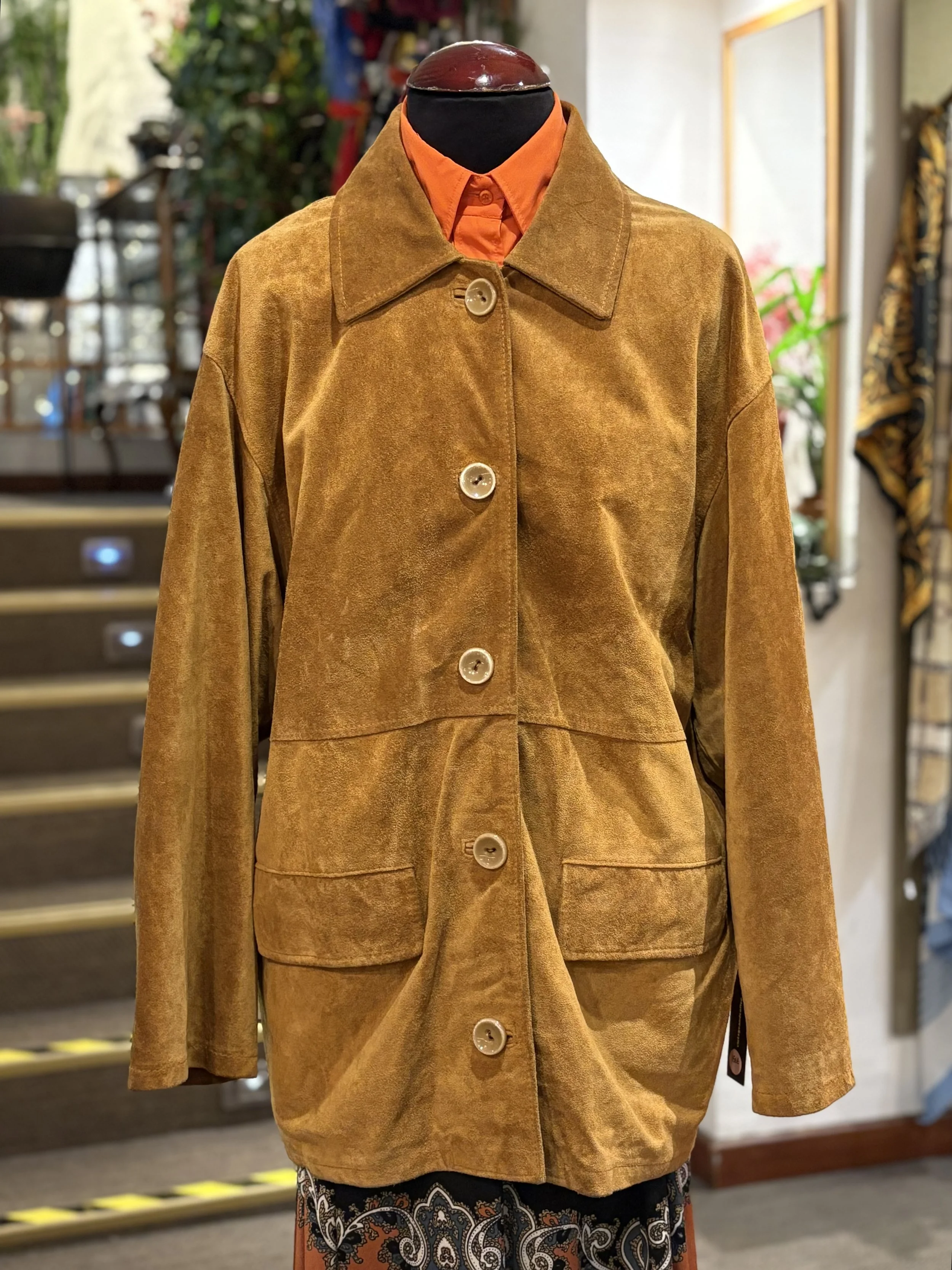 Chaqueta vintage bomber de “MONKS” hombreras pequeñas, cierre de botones, cuello, puños y cintura de punto elástico, bolsillo interior con cierre de botón, forro interior, bolsillos delanteros y laterales, color beige.