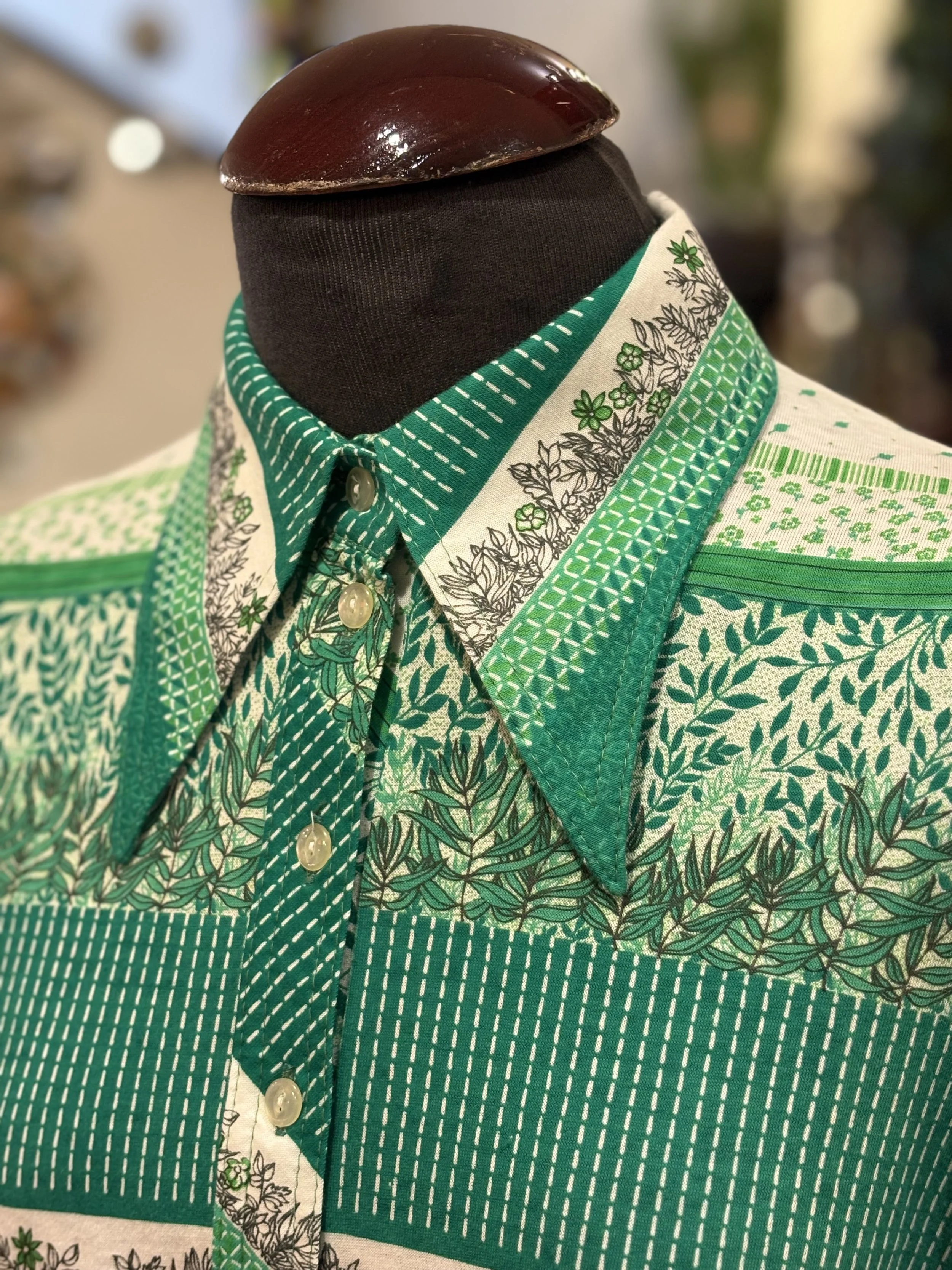 Composición 100% Vincel / cotton = el vincel fue una fibra sintética desarrollada en Suecia en los años 60 que se producía a partir de acrílicos modificados y se mezclaba con el algodón. Su objetivo era lograr tejidos más resistentes, fáciles de lavar y con menos arrugas muy en la línea de la moda práctica de los 60-70. Reflejaba la innovación textil sueca de aquella época, hoy en día ya no se utiliza.